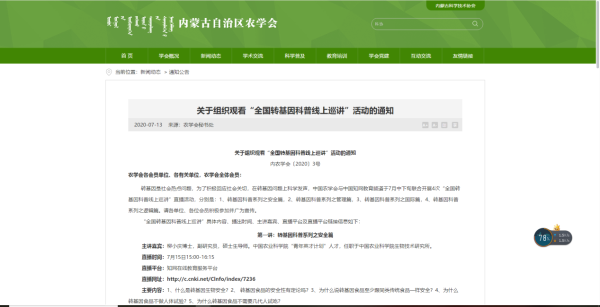 內(nèi)蒙古農(nóng)學(xué)會(huì)發(fā)布觀看通知