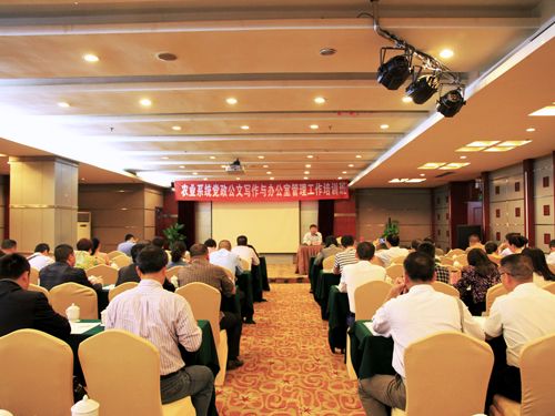 為進一步提高農(nóng)業(yè)系統(tǒng)工作人員黨政公文的寫作水平,更好推進農(nóng)業(yè)機關事業(yè)單位辦公室管理工作的規(guī)范化建設,農(nóng)業(yè)部人力資源開發(fā)中心于2017年4月19-22日,在貴州省貴陽市成功舉辦了農(nóng)業(yè)系統(tǒng)黨政公文寫作與辦公室管理工作培訓班。來自20個省、市、區(qū)各級農(nóng)業(yè)行政事業(yè)單位和部屬單位從事公文寫作及辦公室管理工作的104名學員參加了培訓。