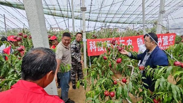 在李官鎮(zhèn)龍王廟村的油桃種植大棚內(nèi),分隊志愿者講授了棚桃夏季管理技術(shù)和中后期品控注意事項、伏季兩次修剪的時間節(jié)點把控以及果實色澤和果面光澤的品控注意事項等,同時介紹了秸稈生物反應(yīng)堆在棚內(nèi)應(yīng)用效果檢驗、秸稈生物反應(yīng)堆技術(shù)應(yīng)用對于生態(tài)建設(shè)的綜合效益等。
